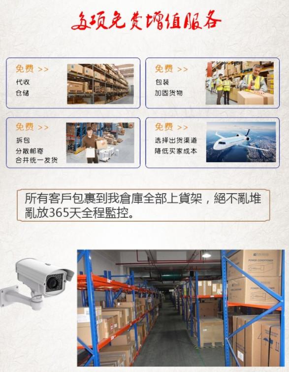 主做臺(tái)灣集運(yùn)專線,擁有大面積倉(cāng)庫(kù);空運(yùn)、海運(yùn)、陸運(yùn)、各種專線。服務(wù)全面,存儲(chǔ)驗(yàn)貨拆包合箱支持走敏感貨,擁有先進(jìn)物流與管理。