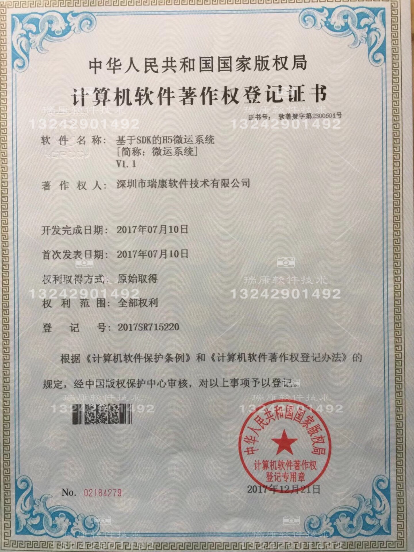 根據《計算機軟件保護條例》和《計算機軟件著作權登記辦法》的規定和中華人民共和國國家版權局的考證,日前,“瑞康科技”再次榮獲計算機軟件著作權登記證書。